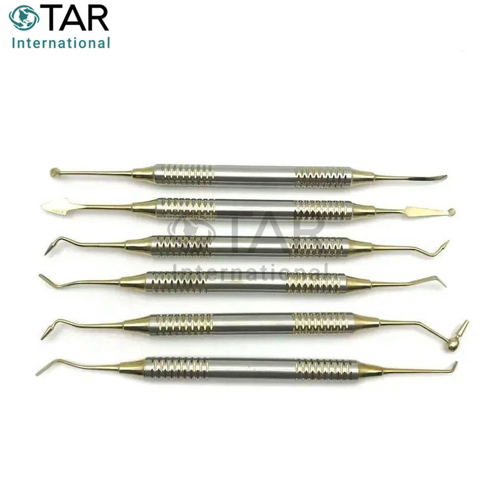 ชุดเครื่องมือเรซินคอมโพสิตทางทันตกรรม 6 ชิ้น ชุบไทเทเนียม สำหรับงานบูรณะ ผสม ขึ้นรูป และวางเรซิน อุปกรณ์ทางการแพทย์