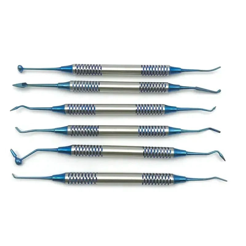 ชุดตะหลิวชุบไทเทเนียม6ชิ้นเครื่องมือทำทันตกรรมทำจากเรซินสำหรับงานบูรณะ