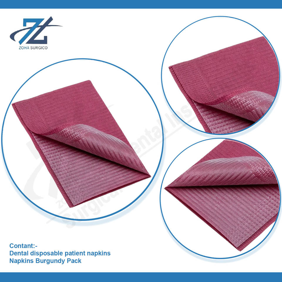 ผ้ากันเปื้อนสำหรับผู้ป่วยทางทันตกรรมแบบใช้แล้วทิ้งผ้ากันเปื้อนเบอร์กัน125แพ็คน้ำผ้าขนแกะกันน้ำใช้ด้วยมือแบบมืออาชีพผ้าเช็ดปากสำหรับคลินิกทันตกรรม