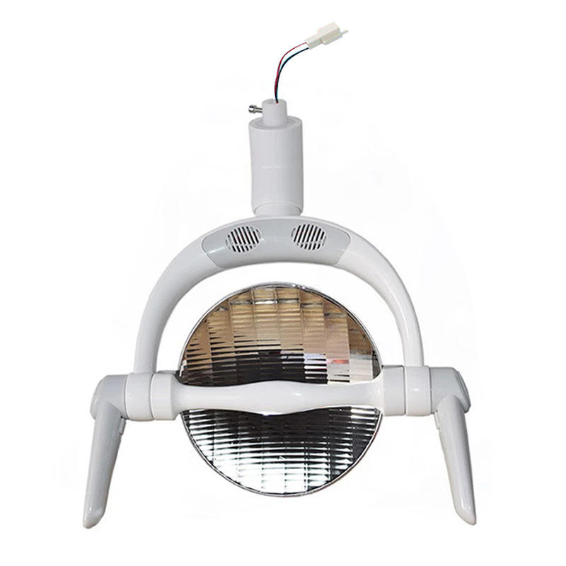 ไฟตรวจฟันพร้อมแขนปรับระดับได้และกระจกสำหรับใช้กับเก้าอี้ทำฟัน วัสดุพลาสติก ใช้พลังงานไฟฟ้า