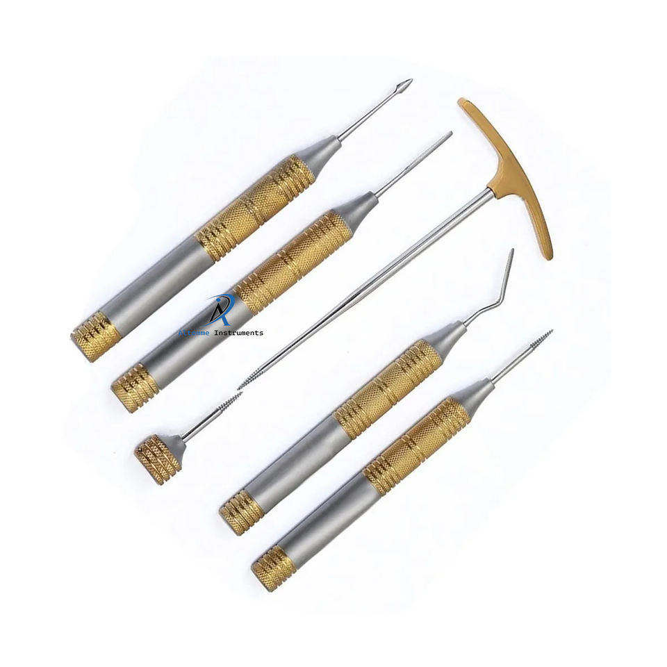 Dental Extraction Gold Plated Periotome Screws 6Pcs Flexible Set for Implant Oral Surgery Tooth Removal Instruments