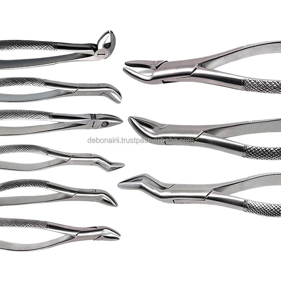 ชุดเครื่องมือถอนฟันแบบใช้มือ ประกอบด้วยคีมถอนฟันและหัวกรอคาร์ไบด์ ทำจากสแตนเลสสตีล นำกลับมาใช้ใหม่ได้ สำหรับการแพทย์ ทันตกรรม โรงพยาบาล และคลินิก