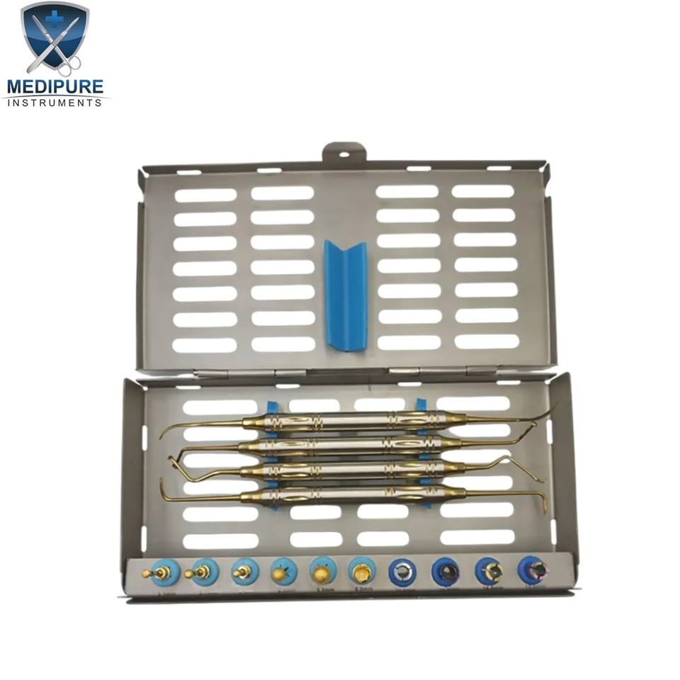 ชุดอุปกรณ์ยกไซนัสสำหรับการปลูกถ่ายรากฟันเทียม ประกอบด้วยเครื่องมือยกเฉพาะทางและดอกสว่าน ทำจากสแตนเลส ใช้ซ้ำได้