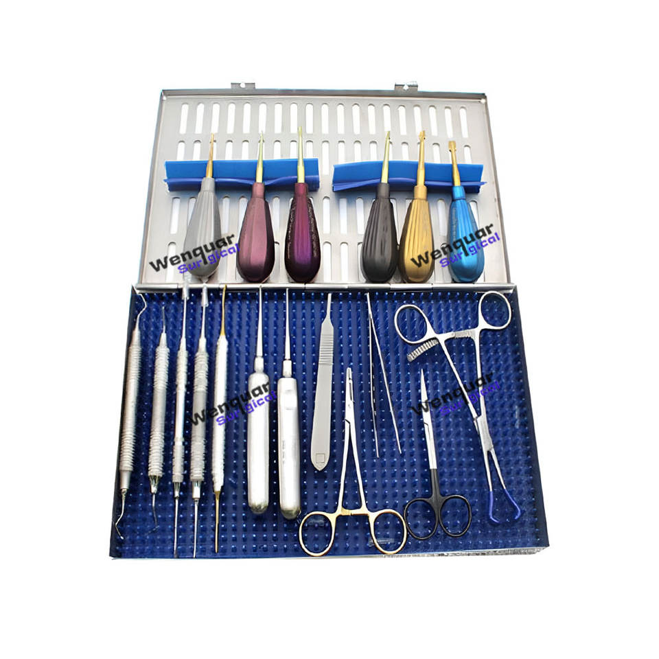 ชุดเครื่องมือทันตกรรม20ชิ้นชุดลิฟต์มีปีกหรูหราเครื่องมือผ่าตัดเคลือบสีเครื่องมือถอนฟันมีดผ่าตัดที่จับผ่าฟันคีมหนีบเนื้อเยื่อ