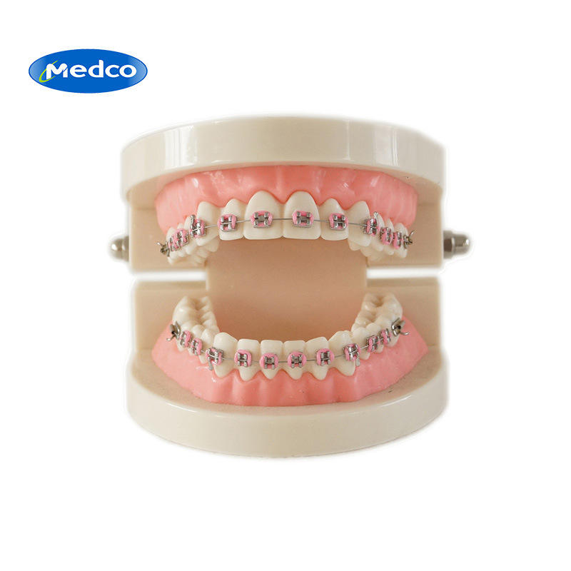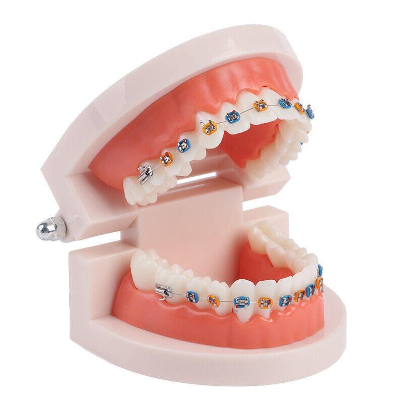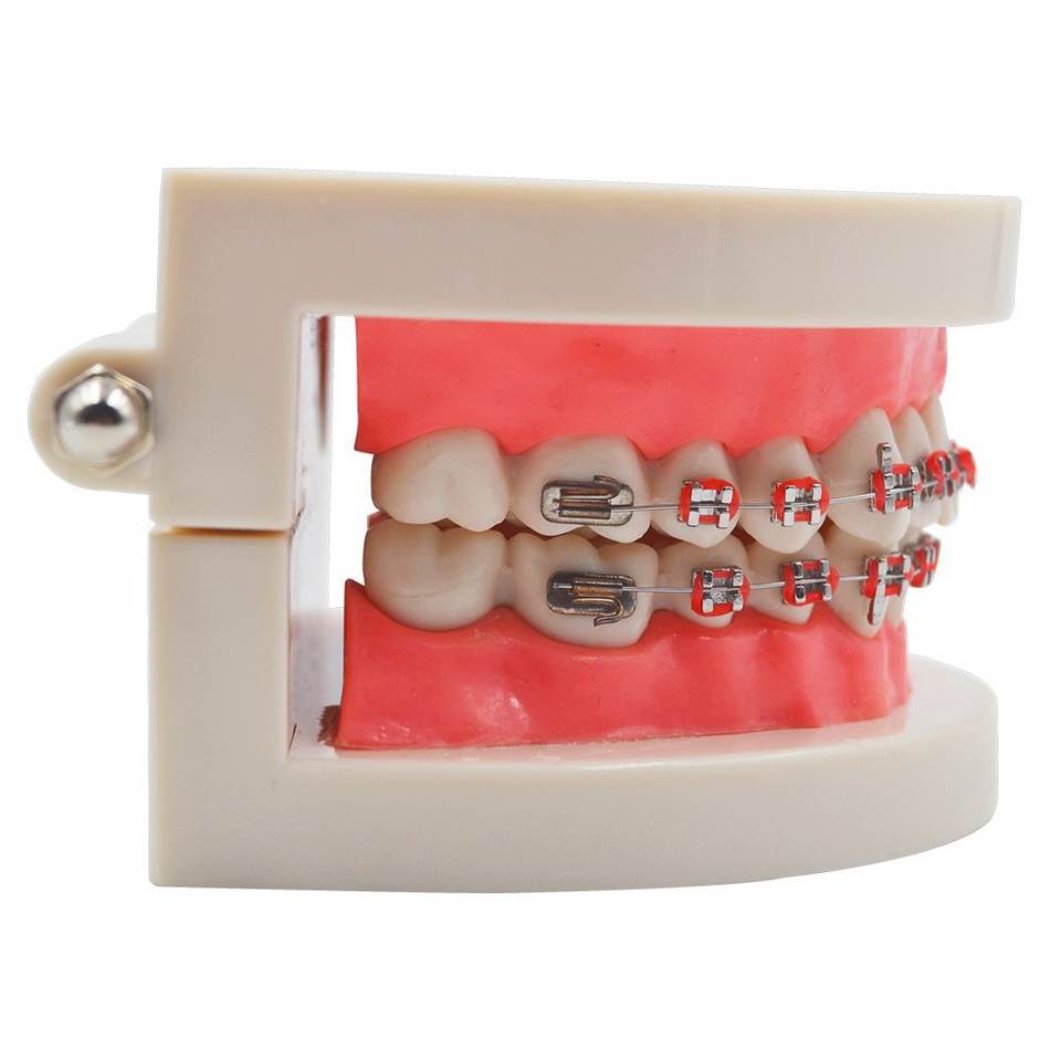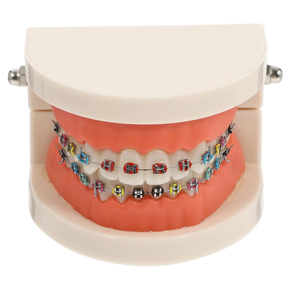 แบบจำลองทันตกรรมจัดฟันพร้อมเหล็กจัดฟันแบบมีสี อุปกรณ์สอนสำหรับการรักษาทางช่องปาก สำหรับผู้ใหญ่