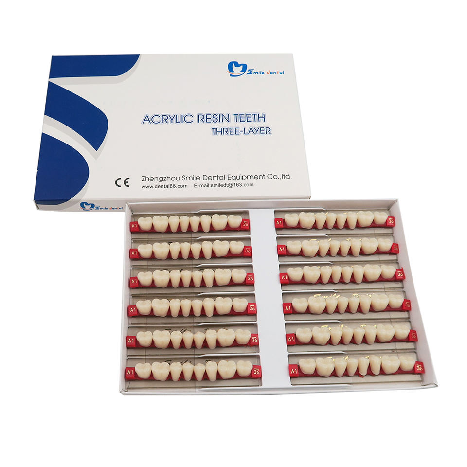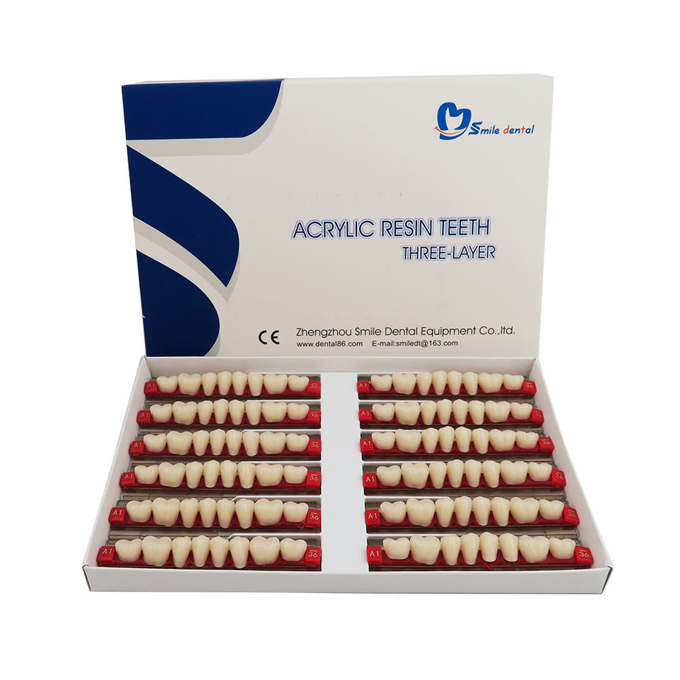 ฟันปลอม3ชั้นเรซินเทียมอะคริลิคฟันซี่ฟันมาตรฐาน CE 50.4ความแข็งยิ้ม SA32ฟันคลาส