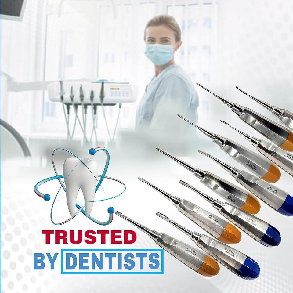 Dental Root Elevator Surgical Set 10 Pcs Straight & Curved Luxating Elevator Periotome Implant Tooth Extraction Kit By Altomme