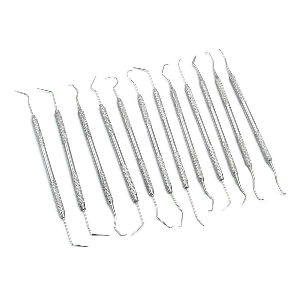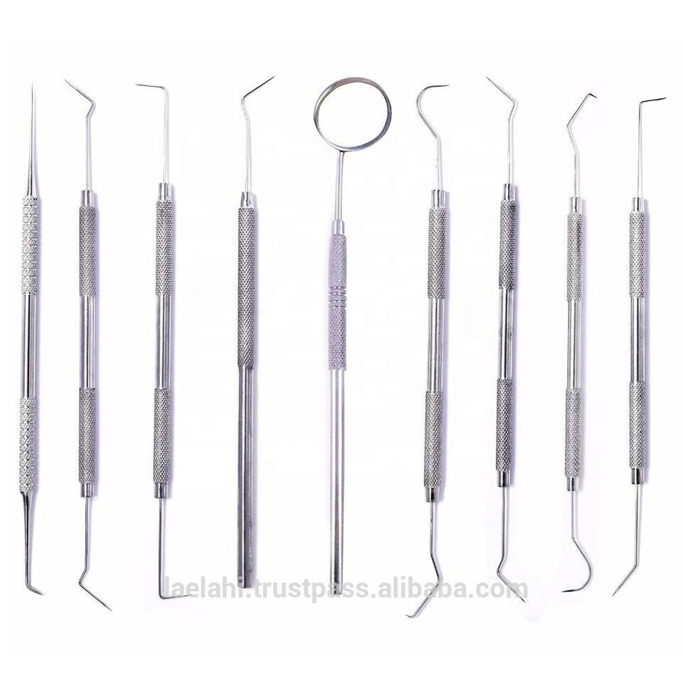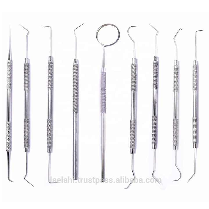 ชุดเครื่องมือขูดหินปูน 9 ชิ้น พร้อมกระจกตรวจฟัน ผลิตจากสแตนเลสญี่ปุ่น สำหรับทำความสะอาดฟันด้วยมือ ได้รับการรับรองมาตรฐาน CE