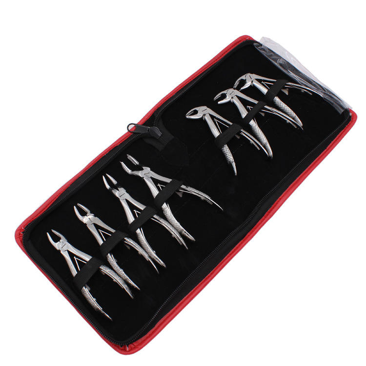 ชุดคีมถอนฟันสแตนเลสสำหรับทันตกรรม ชุดคีมสำหรับผู้ใหญ่และเด็ก 7 ชิ้น ชุดเครื่องมือคีมถอนฟันแบบรุกล้ำน้อย