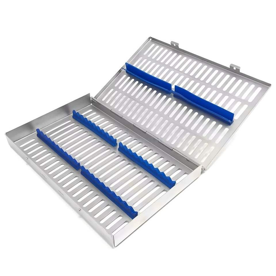 กล่องฆ่าเชื้อทางทันตกรรมพร้อมชั้นวางซิลิโคนสีเขียว กล่องจัดเก็บเครื่องมือผ่าตัดสแตนเลส