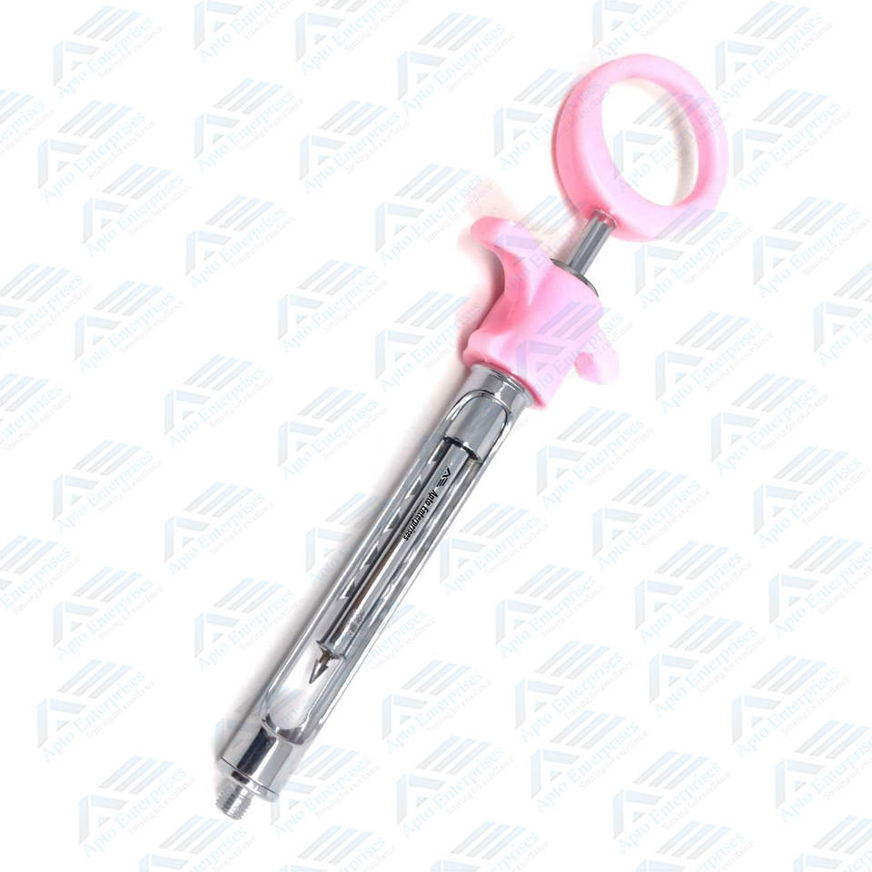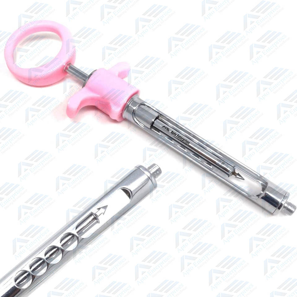 กระบอกฉีดยาสีชมพูแบบดูดเองได้ ขนาด 1.8 มล. ทำจากสแตนเลส น้ำหนักเบา สำหรับการรักษาแบบไม่เจ็บปวด