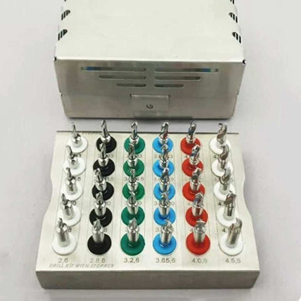 ชุดดอกสว่านรูปกรวยสำหรับปลูกถ่ายฟันพร้อมตัวล็อคแบบยูนิเวอร์แซล 30 ชิ้น เครื่องมือผ่าตัดสแตนเลสแบบมือถือปรับได้