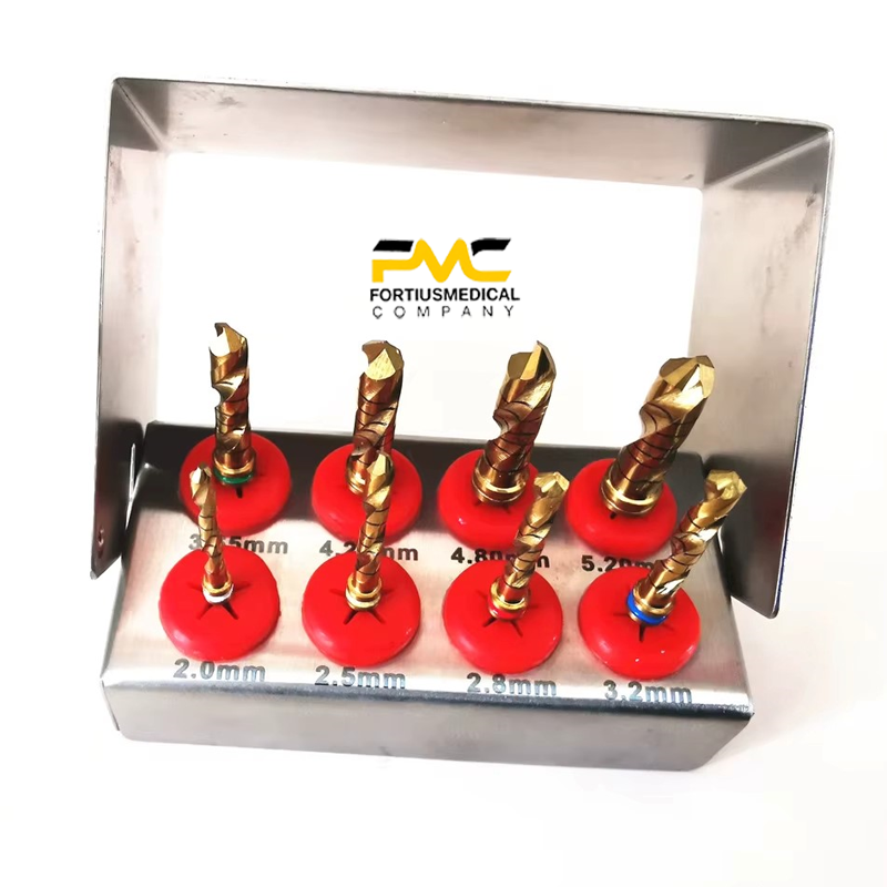 ชุดดอกสว่านสำหรับปลูกถ่ายฟัน 8 ชิ้น พร้อมอุปกรณ์ผ่าตัด ระบบฉีดน้ำภายนอกแบบใหม่ ชุบทอง และที่วางดอกสว่านฟรี