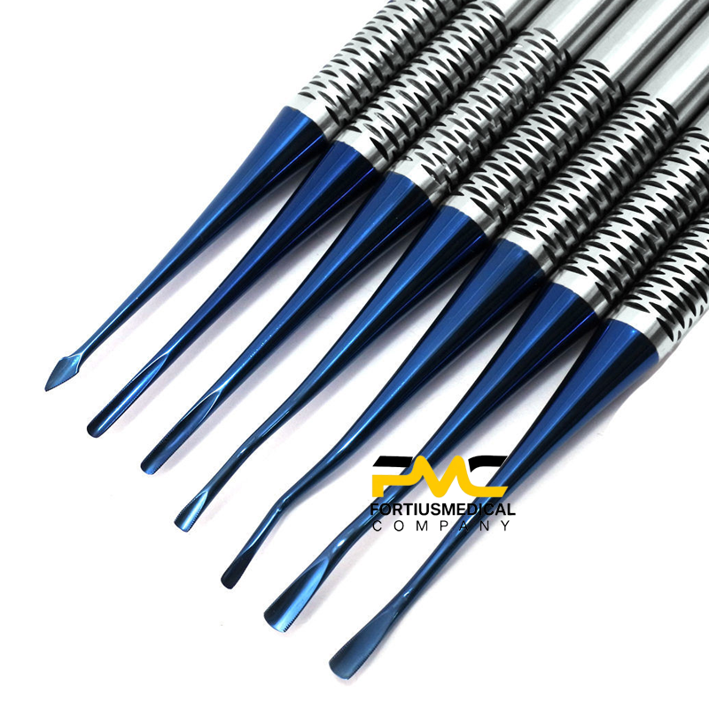 ชุดอุปกรณ์ยกเอ็นรากฟันแบบไม่ทำลายเนื้อเยื่อรอบฟัน (PDL Elevator Kit) จำนวน 7 ชิ้น สำหรับการถอนฟันแบบไม่ทำลายเส้นเอ็นรากฟัน