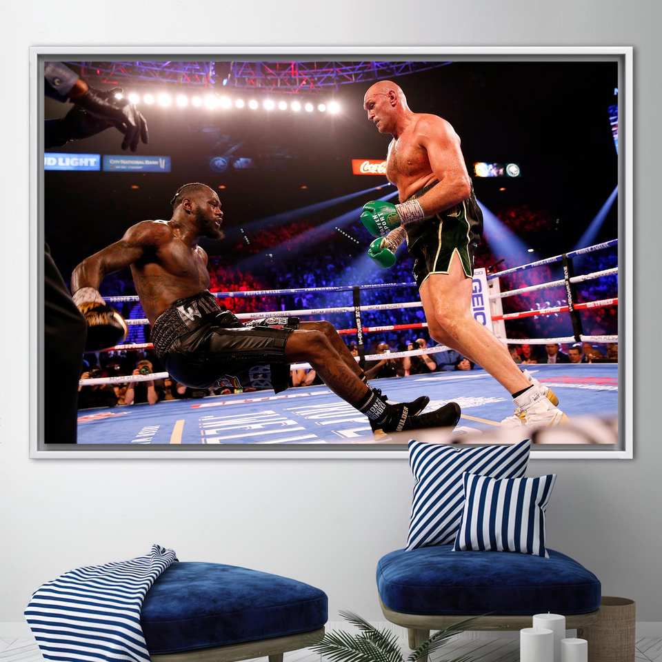 ภาพพิมพ์บนผ้าใบลายยิมของดีออนเตย ไวลด์เดอร์ และไทสัน ฟิวรี่, ของตกแต่งธีมมวย,1P:กรอบสีขาว