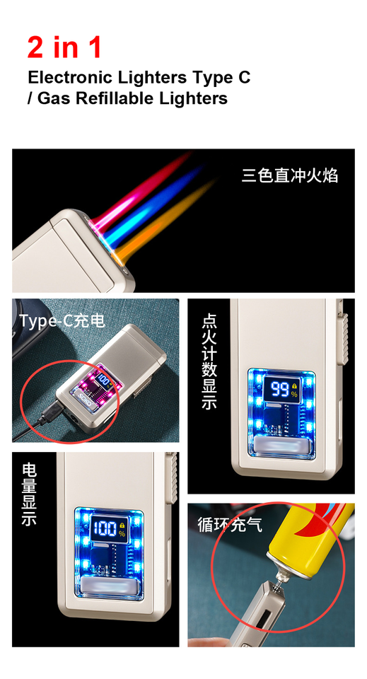 เป็นมิตรกับสิ่งแวดล้อม, แบบพกพา, ชาร์จได้, ความปลอดภัย, กันลม, รีฟิลคุณสมบัติ