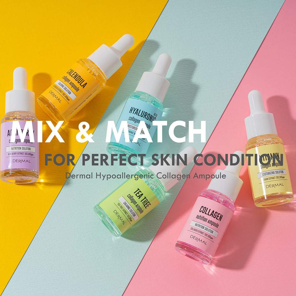 Dermal Korea Ampoule Tea Tree และเซรั่มไฮยาลูโรนิคแอซิด17มล. * 2/เคสสำหรับผ่อนคลายและชุ่มชื่นผิวแพ้ง่าย