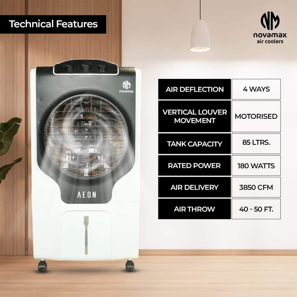 เครื่องทำความเย็นแบบระเหยน้ำในทะเลทราย AEON 85 ลิตร พลาสติก สำหรับใช้ภายนอกบ้าน ครัวเรือน โรงแรม มอเตอร์ทนทาน เป็นมิตรกับสิ่งแวดล้อม ควบคุมผ่านแอป