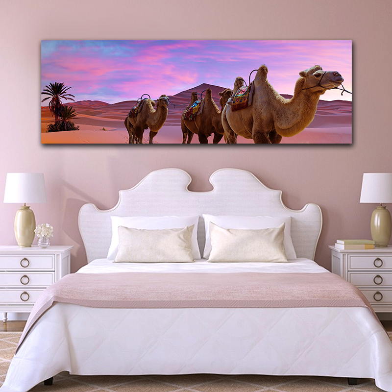ภาพทิวทัศน์ทะเลทรายอูฐรูปสัตว์ภาพพิมพ์ศิลปะบนผืนผ้าใบแคนวาสสำหรับตกแต่งบ้านภาพวาดรูปสัตว์