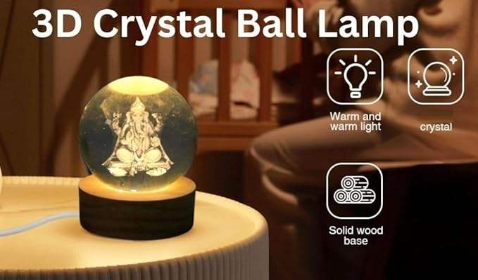 โคมไฟคริสตัลบอล 3 มิติ ดีไซน์อาร์ตเดโค ไฟ LED พร้อมฐานซิลิโคน ทรงกลมแก้ว ของตกแต่งบ้าน ของขวัญรอมฎอน สีตามสั่ง สำหรับผู้หญิงและผู้ชาย