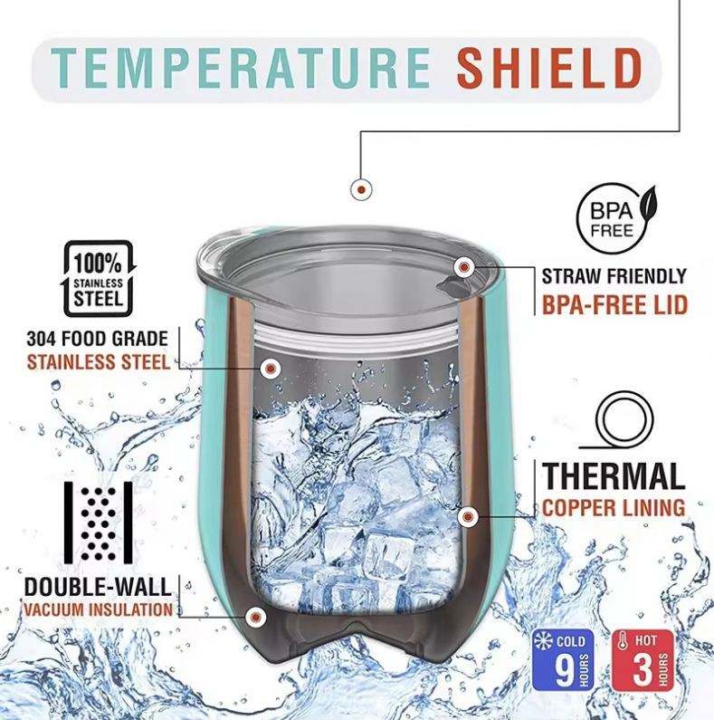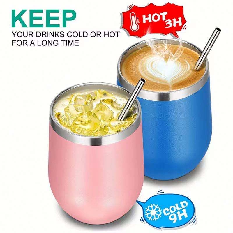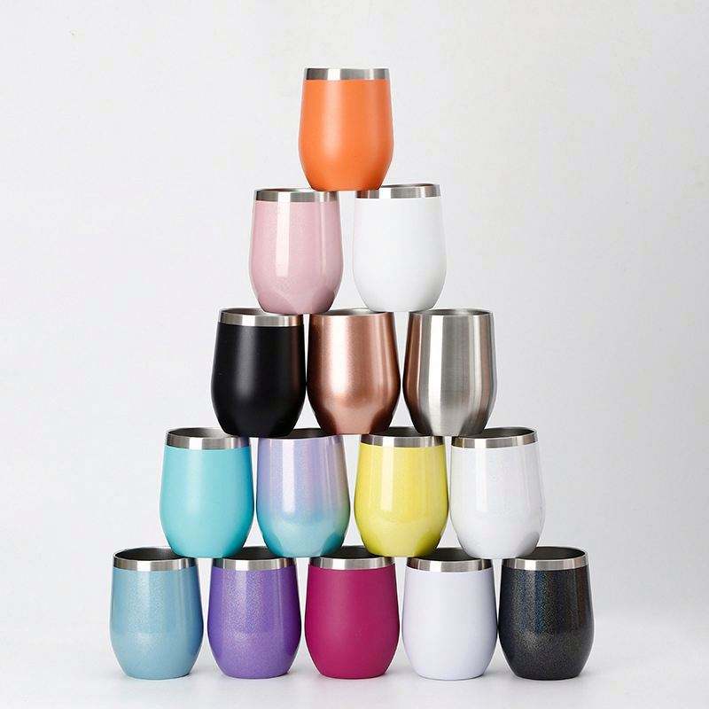 แก้วน้ำรูปไข่เก็บความร้อนสองชั้น สแตนเลส 304 ขนาด 12 ออนซ์ สำหรับใส่ไวน์ กาแฟ น้ำ ปรับแต่งขนาดได้