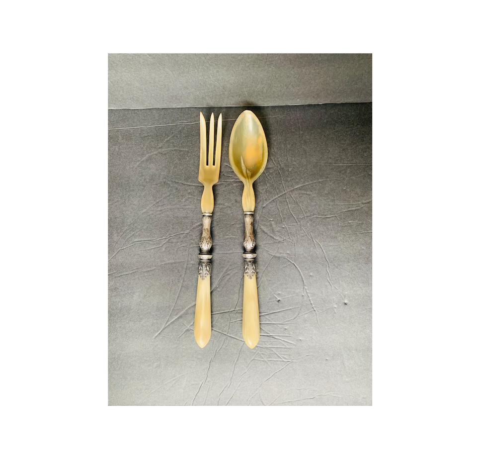 ชุดเครื่องใช้บนโต๊ะอาหารช้อนเขาควายงานหัตถกรรมของชาววังช้อนทรงแตรสำหรับทำอาหารงานแต่งงานดีไซน์แบบดั้งเดิม