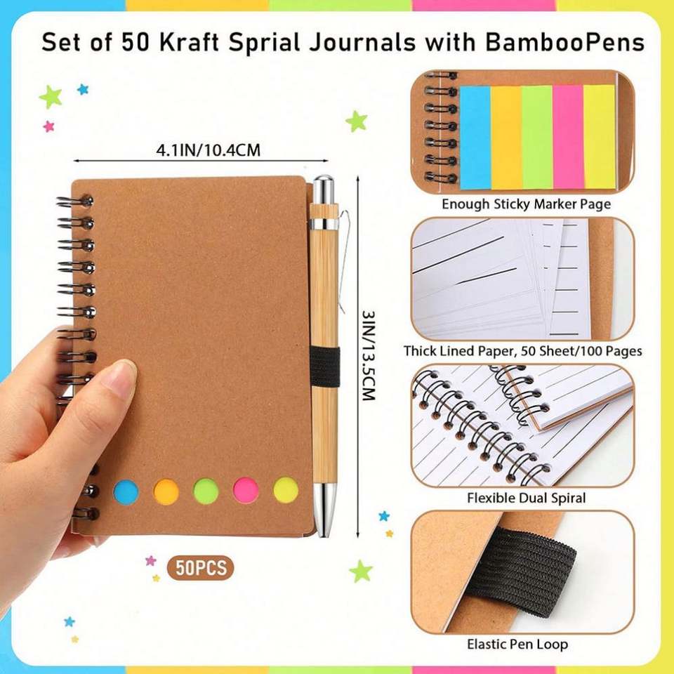 สมุดโน้ตแบบสันห่วงพร้อมปกกระดาษคราฟท์ พิมพ์โลโก้ตามสั่ง ราคาประหยัด พร้อมกระดาษโน้ตแบบแปะ และปากกาที่เป็นมิตรกับสิ่งแวดล้อม