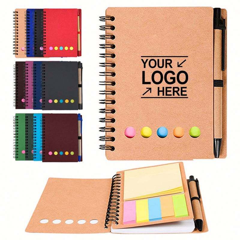 สมุดโน้ตคราฟท์พร้อมปากกา พิมพ์โลโก้ตามสั่ง กระดาษโน้ตแบบมีกาวในตัว สมุดโน้ตขนาดเล็ก พิมพ์ลายตามสั่ง