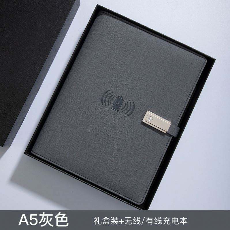ออกแบบโลโก้ตามสั่ง สมุดบันทึกธุรกิจอัจฉริยะสุดหรูหุ้มหนัง ความจุ 8000mAh พร้อมที่ชาร์จไร้สาย พาวเวอร์แบงค์ ของขวัญคริสต์มาสสำหรับวีไอพี
