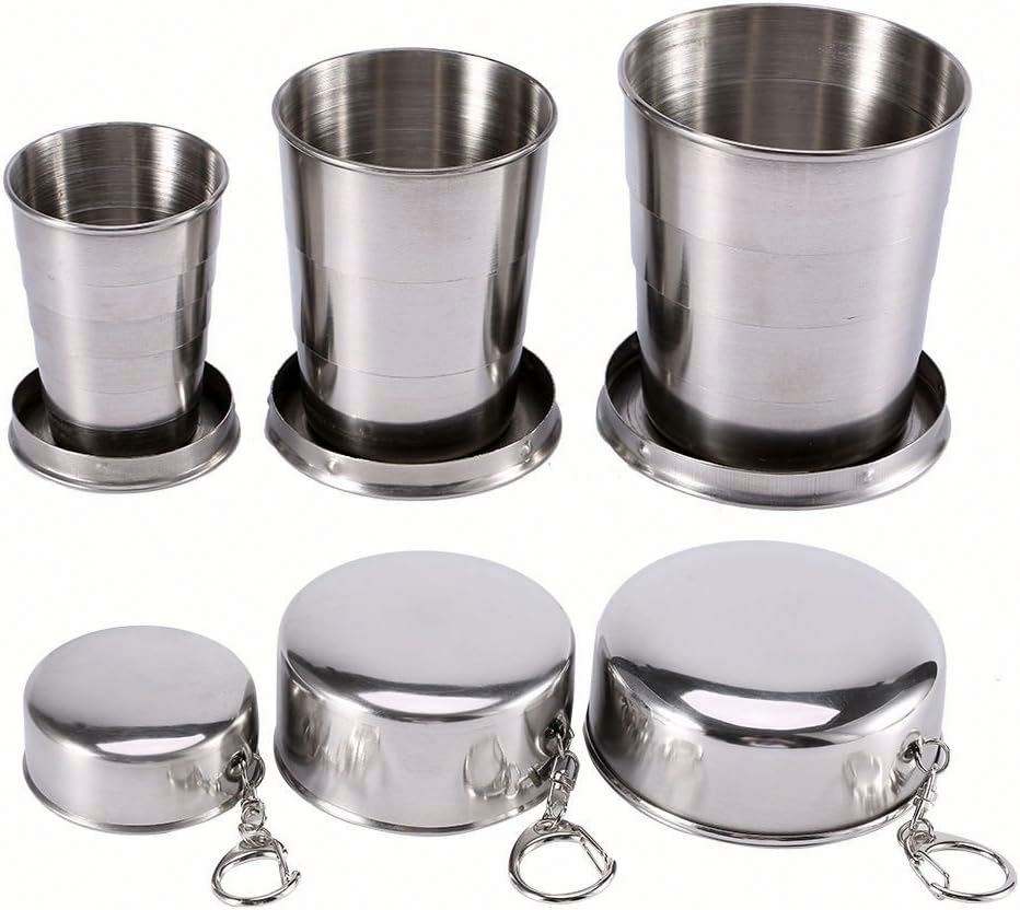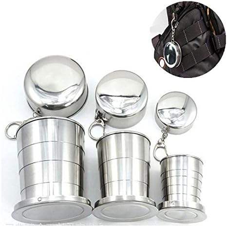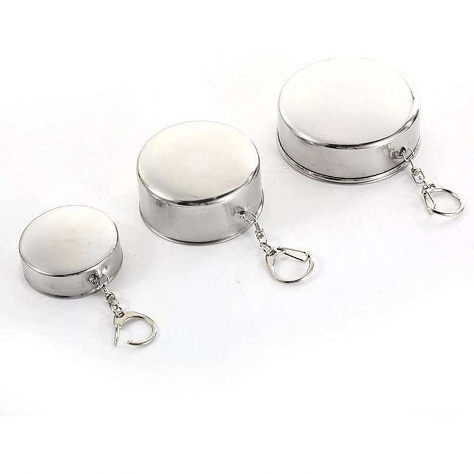 ออกแบบโลโก้ตามสั่ง แก้วน้ำพับได้แบบพกพา สแตนเลสอย่างดี ราคาประหยัด พร้อมพวงกุญแจ