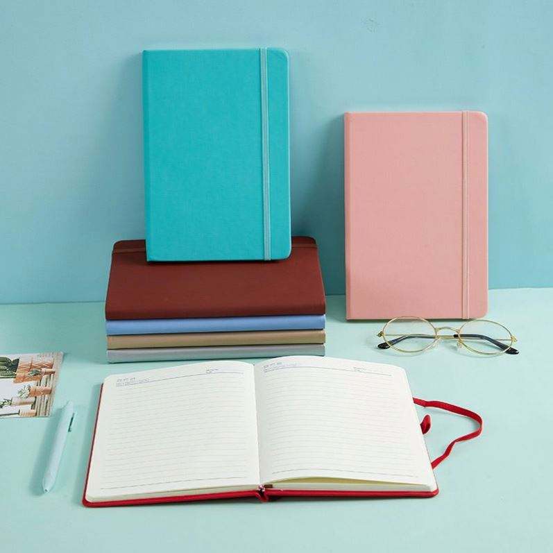 สมุดโน้ตแบบมีสายรัดยางยืด ดีไซน์สร้างสรรค์ ชุดสมุดโน้ตสำหรับธุรกิจ ขายส่ง สมุดโน้ตสีพื้นสำหรับสำนักงาน