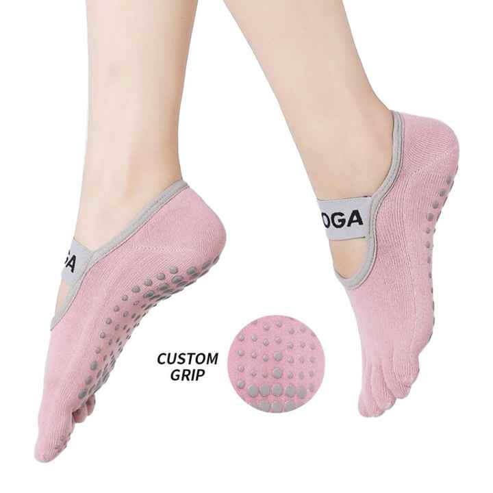 ถุงเท้าโยคะแบบมีโลโก้ห้านิ้วสำหรับผู้หญิง ถุงเท้าพิลาทิสผ้าฝ้ายใส่สบาย