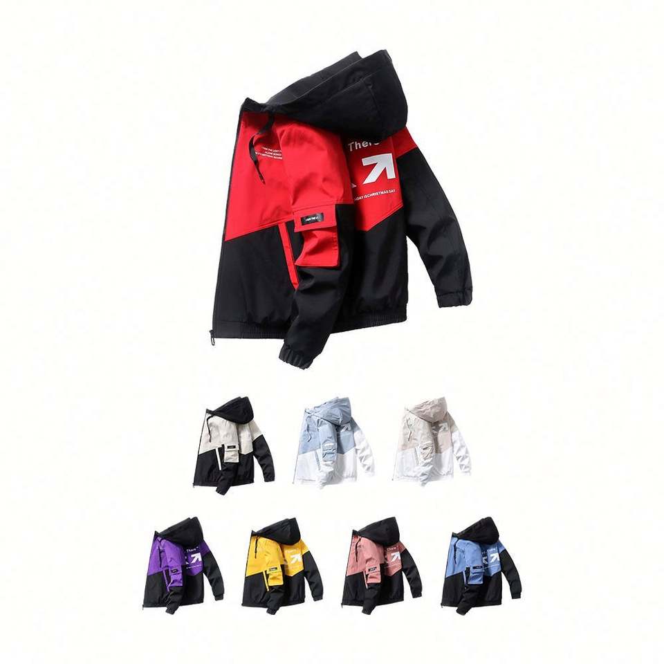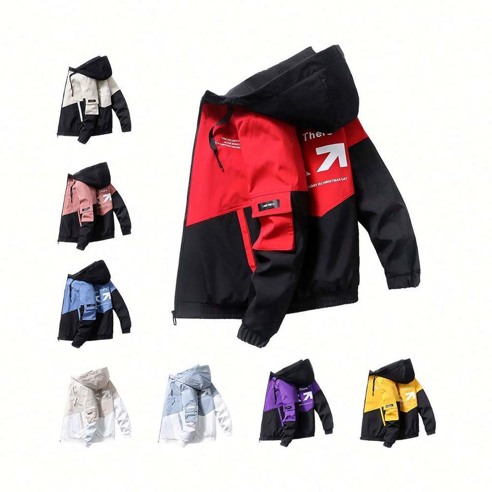 เสื้อแจ็คเก็ตพาร์ก้าทรงสลิมสำหรับผู้ชาย ดีไซน์ขายดี พร้อมฮู้ดและบุใยอุ่น แฟชั่นลายพิมพ์ตัวอักษร เหมาะสำหรับใส่ฤดูใบไม้ผลิ