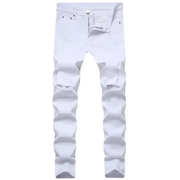 กางเกงยีนส์ดีไซน์คลาสสิคทรงสลิมฟิตสำหรับผู้ชายรุ่นใหม่ สไตล์วินเทจขาดๆ แบบคัสตอม สีดำลำลอง ผ้าเดนิมน้ำหนักเบา ย้อมสีแบบ Garment Dyed