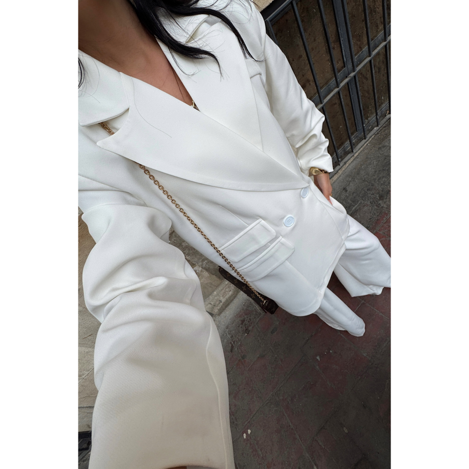 ชุดสูทสีขาวสำหรับผู้หญิง ดีไซน์หรูหรา ประกอบด้วยเสื้อแจ็คเก็ตและกางเกง