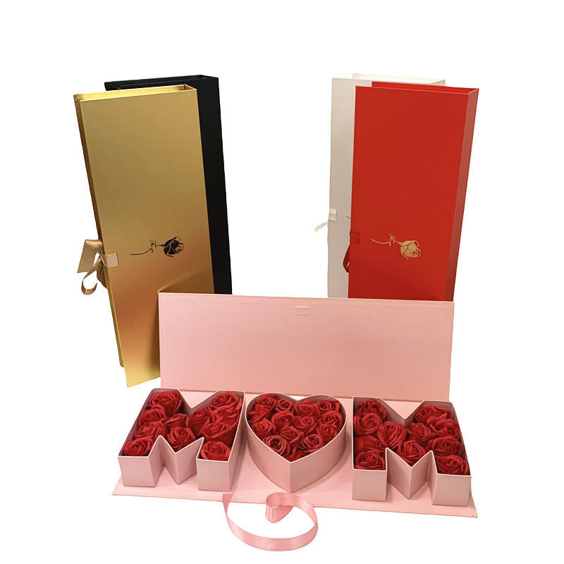กล่องของขวัญกระดาษแข็งทรงสี่เหลี่ยมผืนผ้าขนาดใหญ่ ดีไซน์หรูหรา แบบกำหนดเอง สำหรับวันแม่ บรรจุภัณฑ์ดอกกุหลาบพร้อมจดหมาย