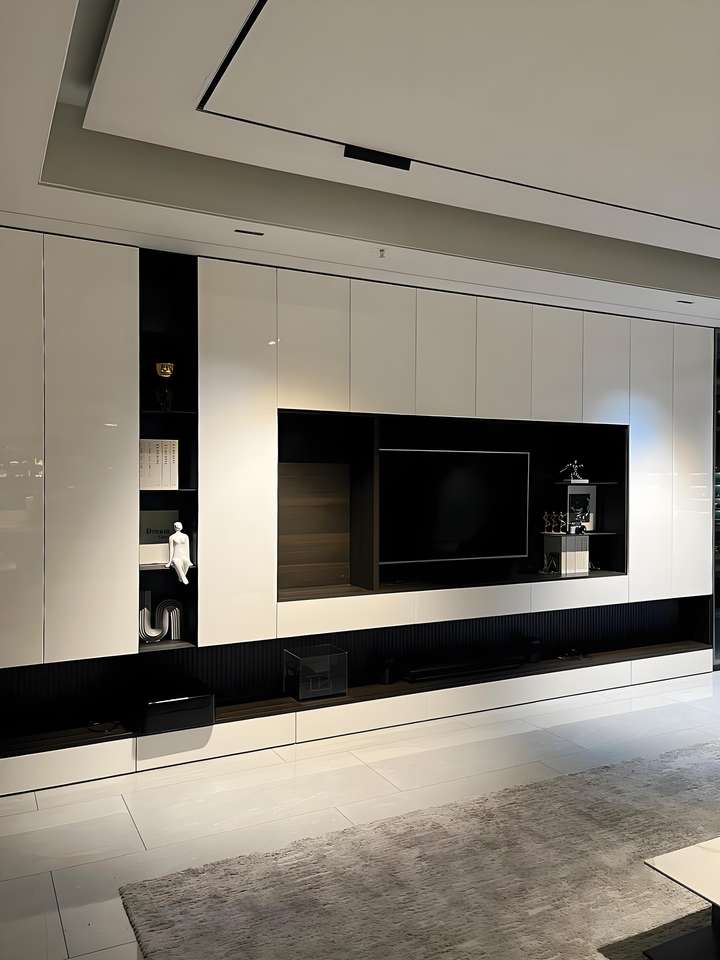 ตู้วางทีวีติดผนังดีไซน์หรูหราทันสมัยสำหรับความบันเทิงในบ้านตู้วางทีวีห้องนั่งเล่น