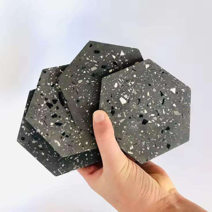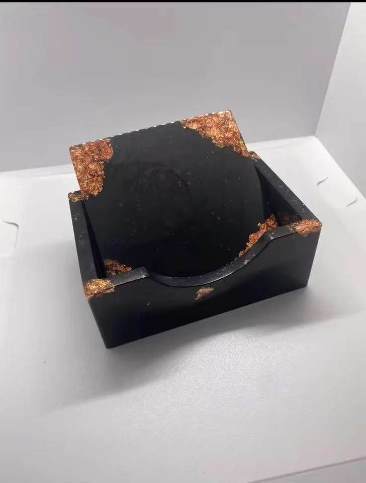ถาดรองแก้วลายหินอ่อนหินขัดทรงสี่เหลี่ยมดีไซน์หรูหราเป็นมิตรต่อสิ่งแวดล้อมชุด4ชิ้นและงานฝีมือทำจากเรซินอีพ็อกซี่