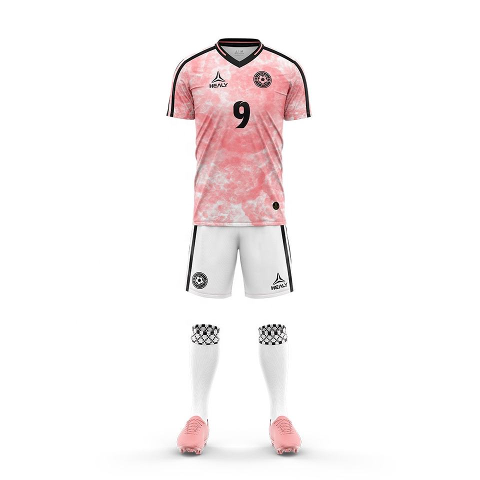เสื้อ100% ผ้าโพลีเอสเตอร์สำหรับผู้ชายชุดฟุตบอลดีไซน์สีขาวดำ