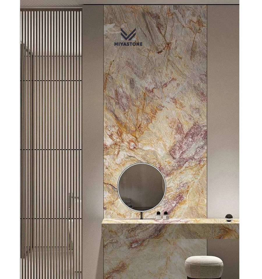 แผ่นหินควอตซ์ธรรมชาติดีไซน์หรูหราไม่เหมือนใครใช้ในร่มสำหรับเคาน์เตอร์ครัวผนังพื้นหลังของตกแต่งโต๊ะรับประทานอาหาร