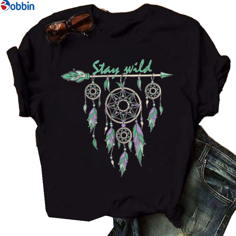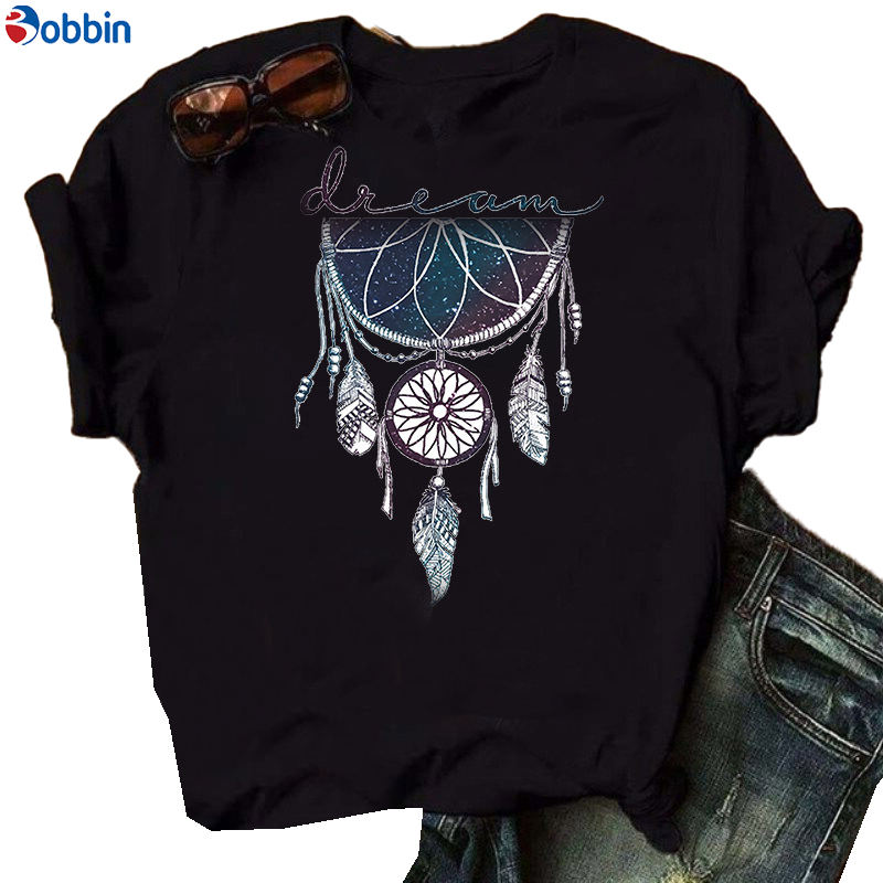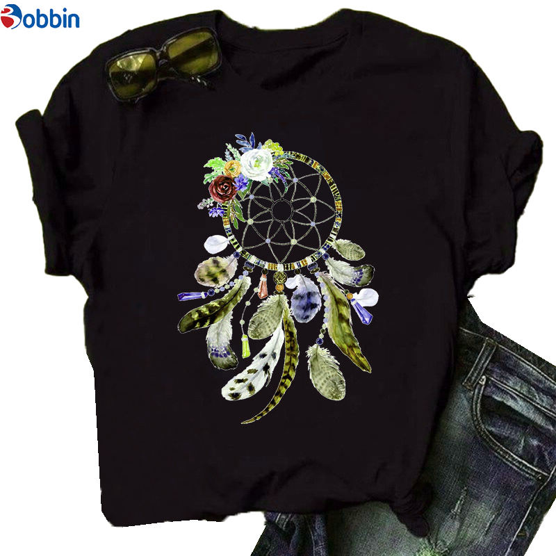 เสื้อยืดพิมพ์ลายดีไซน์สวย ระบายอากาศได้ดี สไตล์น่ารักหวานๆ ไซส์ใหญ่ ราคาถูก สำหรับผู้หญิง ตกแต่งด้วยลายขนนก