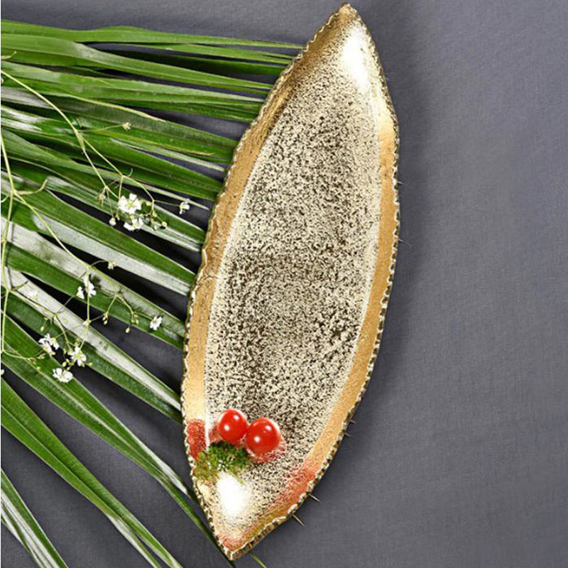 ถาดเสิร์ฟดีไซน์หรูหรา รูปทรงเรือ ทำจากโลหะชุบทอง งานแฮนด์เมด สำหรับร้านอาหารและงานแต่งงาน