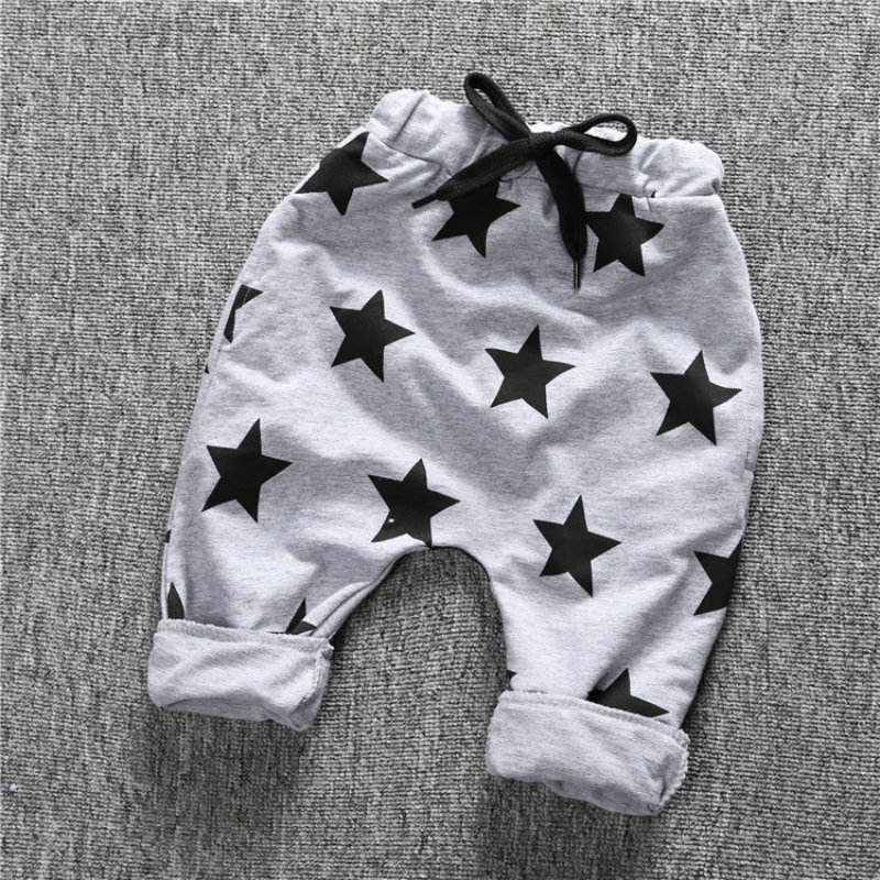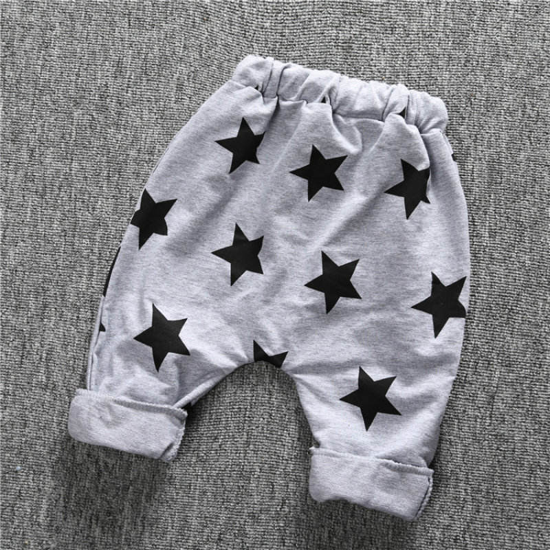 กางเกงเด็กผู้ชายลายดาวพิมพ์ลายสไตล์ลำลองผ้าฝ้ายสำหรับฤดูใบไม้ผลิและฤดูใบไม้ร่วงทรงฮาเร็ม