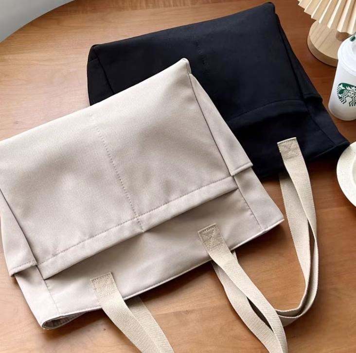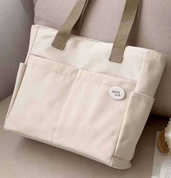 กระเป๋าผ้าแคนวาสใช้ซ้ำได้ทุกวันดีไซน์มีกระเป๋าด้านนอกสองช่องมีซิปปิดและใช้ซ้ำได้