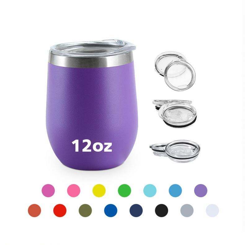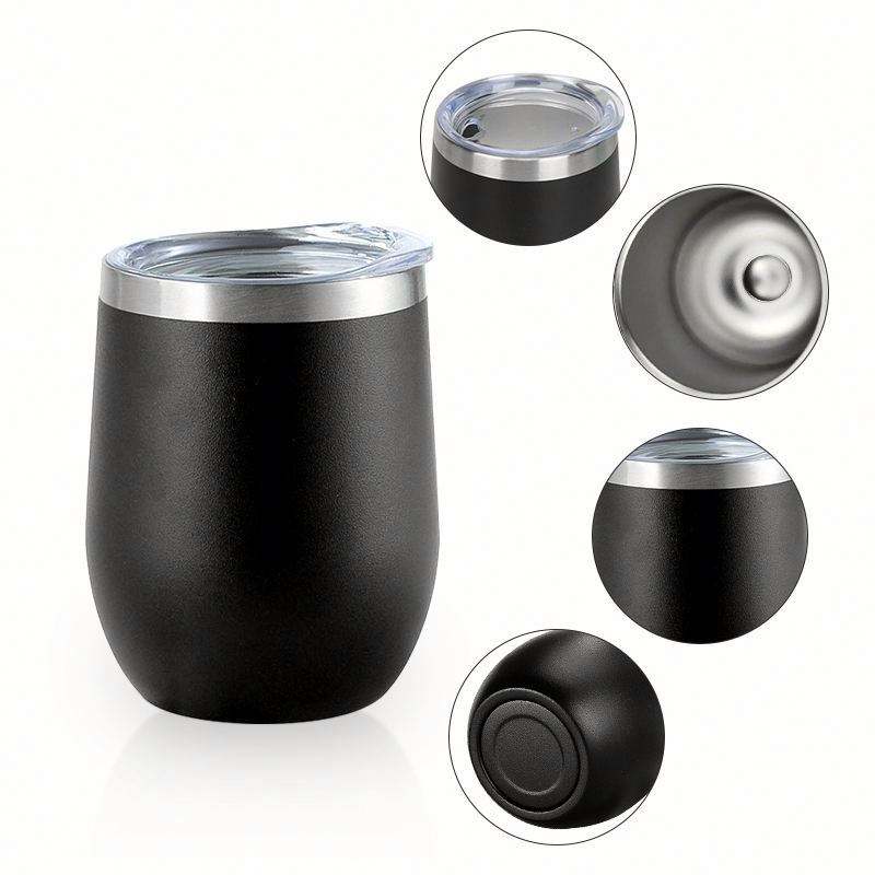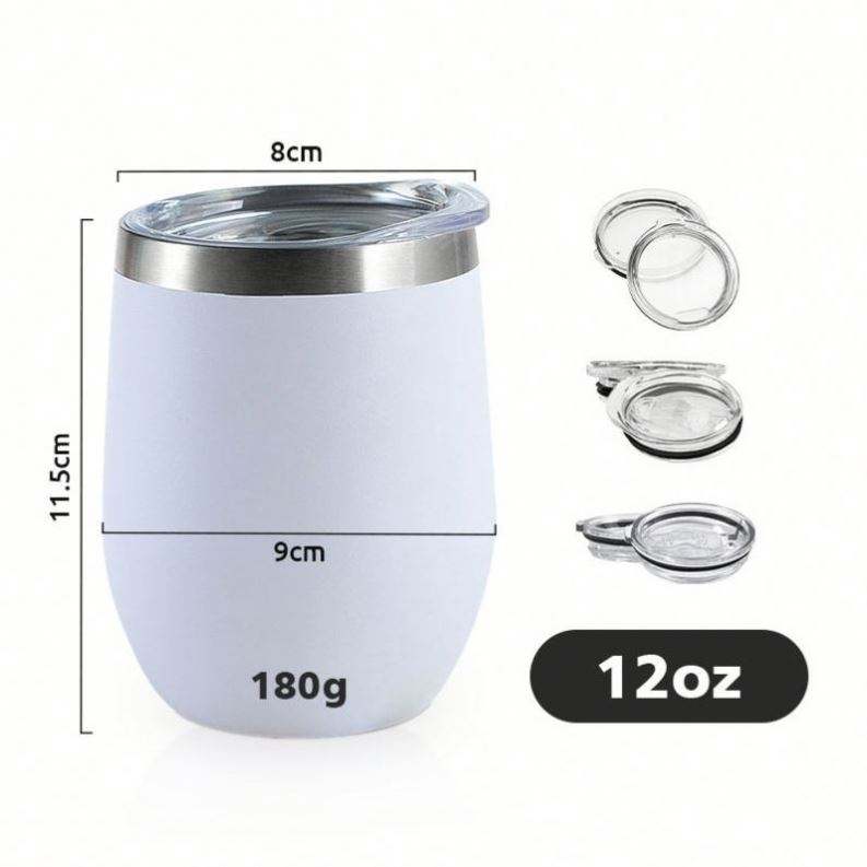 แก้วไวน์สเตนเลสสตีลเคลือบผง 12 ออนซ์ แบบไม่มีก้าน ดีไซน์ USA Warehouse แก้วกาแฟสุญญากาศสองชั้น แก้วไวน์ แก้วมัค