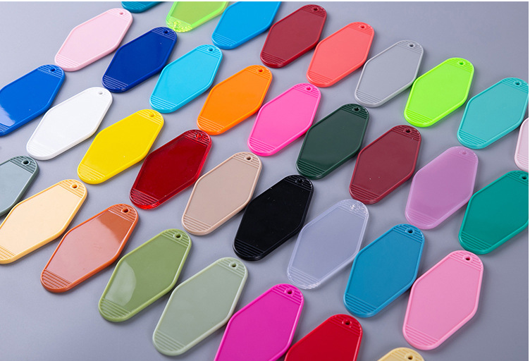 ออกแบบพวงกุญแจห้องพักสไตล์วินเทจแบบขายส่ง พิมพ์ลายสีพื้นแบบซับลิเมชั่นพร้อมพิมพ์ UV สำหรับโรงแรมและผู้ที่ชื่นชอบอนิเมะ/การ์ตูน
