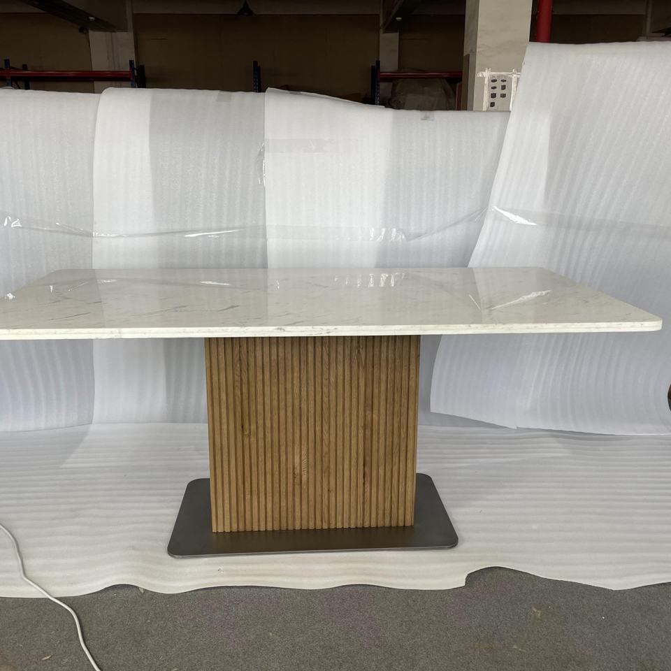 โต๊ะรับประทานอาหารดีไซน์ทันสมัย ท็อปหินอ่อนสีขาว ฐานไม้เนื้อแข็ง