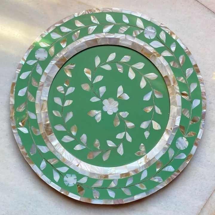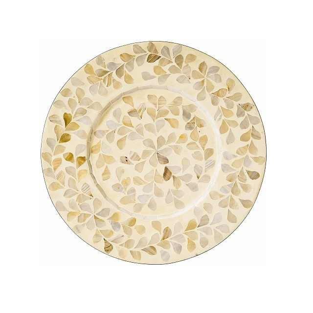จานชาร์จฝังกระดูกไม้ดีไซน์ทรงกลมสำหรับโชว์ใต้จาน