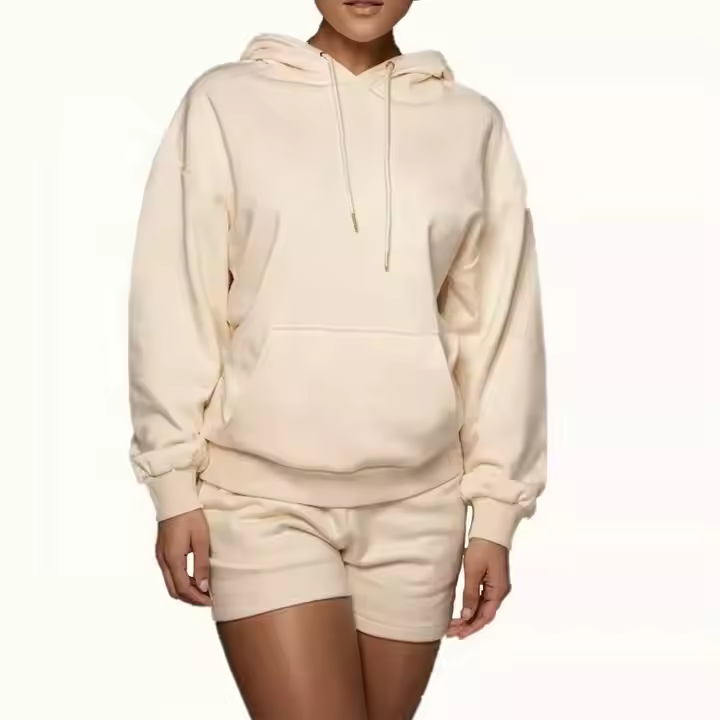 ชุดสองชิ้นกางเกงขาสั้นเสื้อมีฮู้ดสำหรับผู้หญิงเสื้อผ้าอินเทรนด์มาใหม่ฤดูใบไม้ผลิ