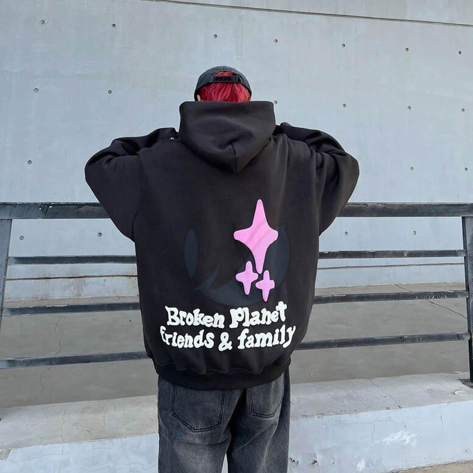 เสื้อสเวตเตอร์มีฮู้ดของผู้ชายพิมพ์ลายพัฟโลโก้แบบกำหนดเองสำหรับฤดูหนาวเทคนิคการย้อมสีล้วนล้วนออกแบบโลโก้ของคุณเอง